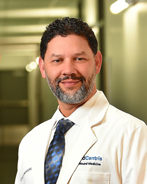 His belief is in advanced modalities and taking an aggressive holistic approach to wound management that involves not only the members of the wound care team but the patient, caregivers, primary care physician and other specialist such as surgeons, infection disease physicians, and dieticians. It is through this aggressive approach that he and his team are successful in, not only salvaging limbs and saving lives, but preventing future and reoccurring wounds. His daily goal is for complete patient satisfaction through accelerated healing rates, and improved patient functional status with the most cost-effective methods of wound healing delivery.
